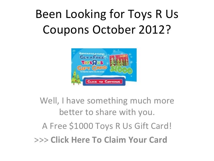 15% and 20% Off Toys R Us Coupon: Promo Codes, Printable Coupons Jun 29, 2018 · 15% and 20% Off Toys R Us Coupon: Promo Codes, Printable Coupons Toys R Us Coupons For more than 30 years, Toys R Us has been a leading dedicated toy and juvenile products retailer. The company is sold in almost 900 stores in the US and has more than 700 stores in at least 35 countries and jurisdictions.