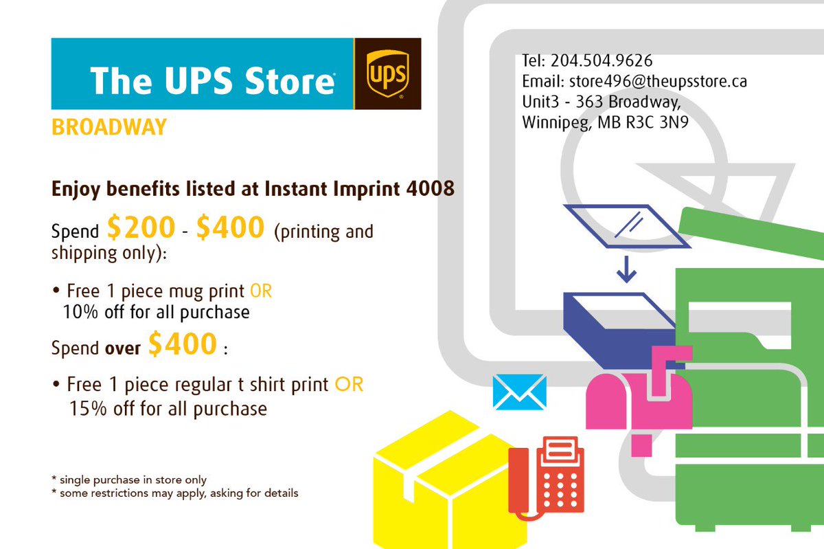 Pack and Ship, Print, Mailboxes and more - The UPS Store 10% Off Sitewide Printing Save on professionally printed items from The UPS Store by using code N20S at checkout on orders over $10. Offer valid online only through 11/30 at participating locations. SHOP NOW Be a Part of the Team The UPS Store Inc. headquarters is looking to hire talented, dedicated people to help drive results for the company.