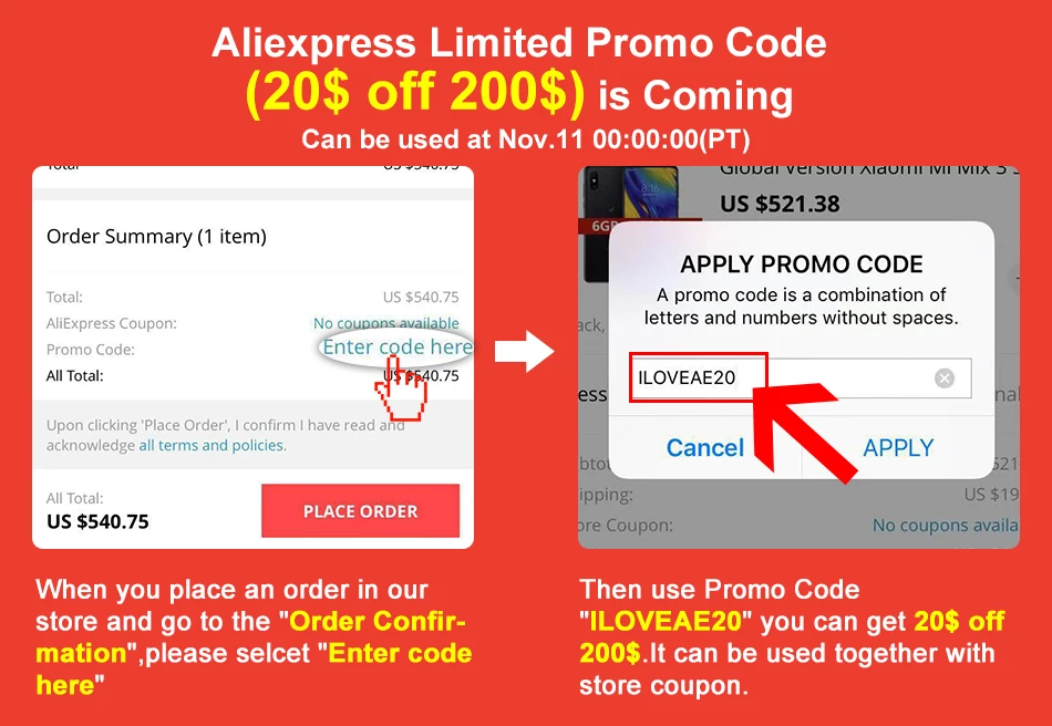 AliExpress Promo Code: $17 OFF → Nov 2022 | Nine AliExpress coupon code - Get $17 off when you spend over $170 during the 11.11 Sale: Code: 5 November: Save $12 on purchases above $120 using this AliExpress promo code: Code: 5 November: Shop at AliExpress to claim a $5 JB Hi-Fi Gift Card (T&Cs apply) Reward: 6 November: Save $5 on your purchase with this AliExpress coupon: Code: 5 November